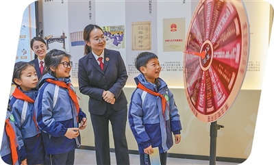針對“加強普法宣傳”,全國數萬名檢察官法治副校長履職更加深化,從定期授課發展到幫助學校培養自己的法治教育力量,并廣泛運用模擬法庭、法治情景劇等沉浸式體驗,讓法治的種子在未成年人心中生根。