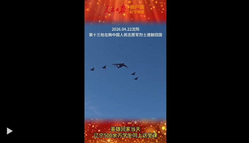 4月22日,第十三批在韓中國(guó)人民志愿軍烈士遺骸迎回儀式在沈陽(yáng)舉行。當(dāng)天下午,一堂《英雄,永不謝幕》大思政課特別節(jié)目如期舉行,志愿軍老戰(zhàn)士、烈士家屬等現(xiàn)場(chǎng)講述英雄故事,遼寧全省500余萬大中小學(xué)生一同聆聽、學(xué)習(xí)、傳承……