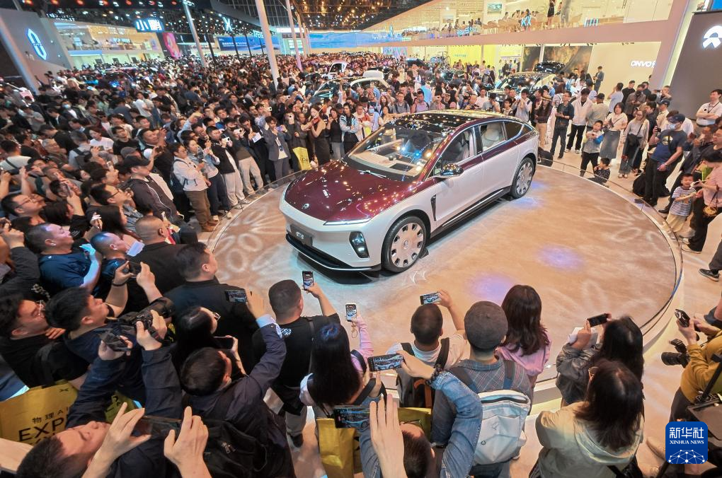 4月26日,在2026北京車展上,參觀者在智己公司展臺參觀智己LS8。