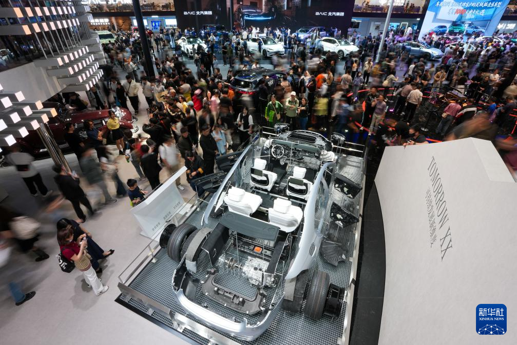 4月26日,在2026北京車展上,參觀者在梅賽德斯-奔馳公司和北汽集團展臺參觀。