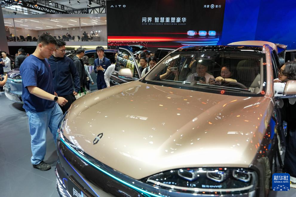 4月26日,在2026北京車展上,參觀者參觀“問界”系列車型。