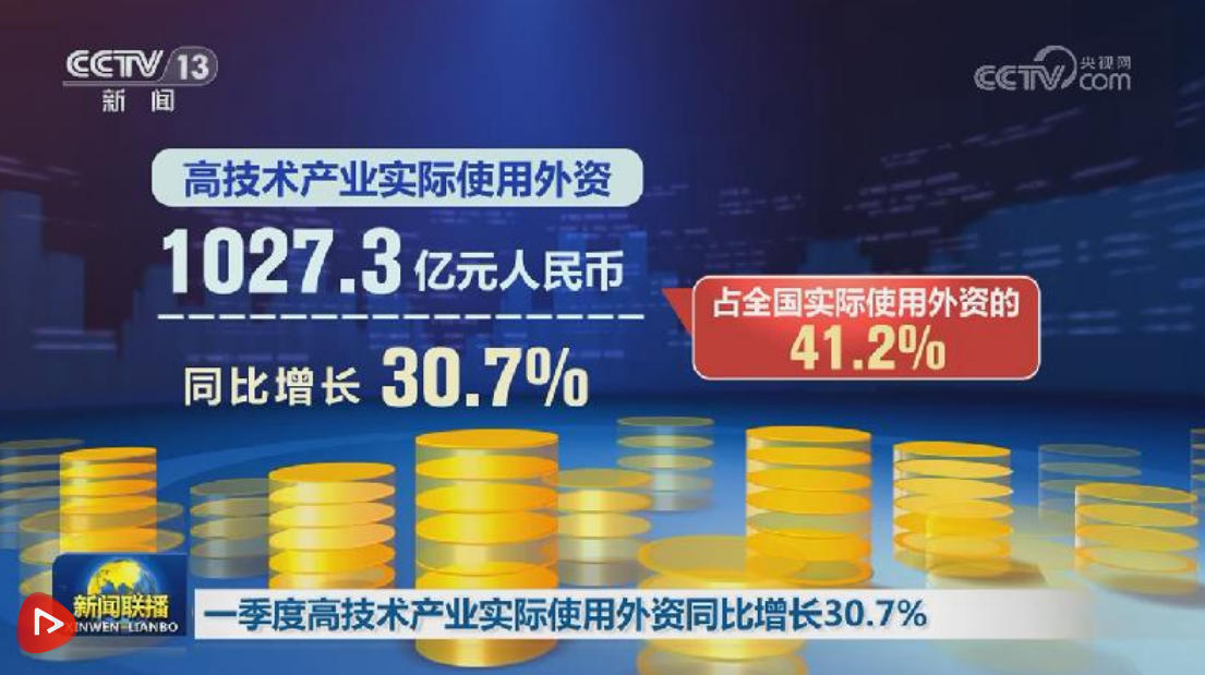 央視網消息(新聞聯播):商務部發布的數據顯示,今年一季度,我國高技術產業實際使用外資同比顯著增長,在全國實際使用外資中占比持續提高。