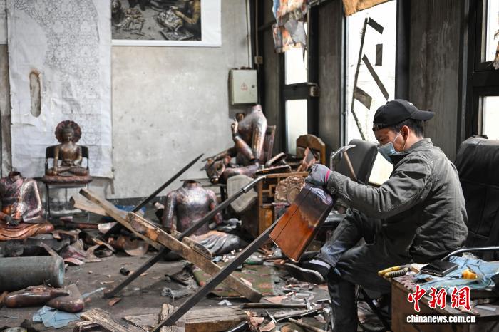 走進西藏雪堆白技工學校,院落里清脆的金屬敲打聲不絕于耳。金屬技藝教師羅布頓珠正與弟子圍坐一桌,手握工具專注雕琢,一錘一鑿間,普通的金屬被塑造成造像作品。