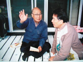 臺灣“文獻(xiàn)館”編纂李展平(右)赴日本訪視八十六歲的臺籍日本兵林水木,談及當(dāng)年在南洋成為戰(zhàn)俘的日子,林老淚縱橫。(臺灣《聯(lián)合報》圖片)