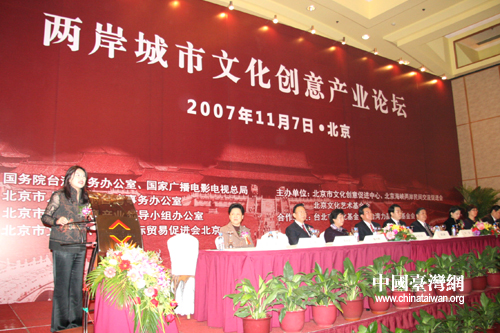 “兩岸城市文化創意產業論壇”是2007年兩岸城市文化創意產業交流互訪系列活動之一。旨在促進兩岸文化創意產業策略、方法與務實經驗等方面交流,積極搭建兩岸文化創意產業交流平臺。此次有200余名來自京臺兩地的文化創意、影視產業界人士相聚北京,就進一步推動兩岸文化創意產業的交流與合作進行研討。(文/圖 李徽)