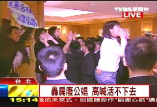據臺灣TVBS電視臺報道,今天下午這4名向陳水扁嗆聲的民眾自稱是“日日春協會”的,不滿昔日陳水扁在臺北市長任內廢除公娼的政策,因此選在今天陳參加活動時發難。他們在陳水扁身旁數米處,突然高喊口號并取出備好的大字報表達抗議。