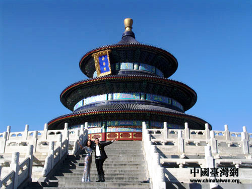 《Forever Friends》音樂電視劇組在天壇祈年殿拍攝,圖為孫楠、李玟聯袂現場錄制中。