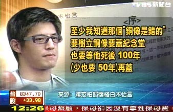 蔣友柏還認為中正紀念堂樹立蔣介石銅像是錯的,要樹立銅像要蓋紀念堂,也要等他過世后100年至少也要50年,“人民想替你蓋,才叫真偉大”。