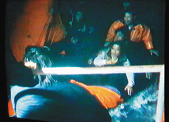 基隆海巡隊從救生筏上救起大陸漁工。(聯(lián)合報圖)