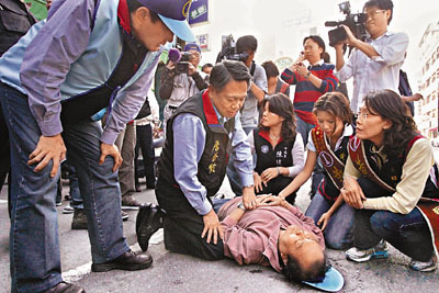 報道說,李東杰11日在高雄采訪“立委”選舉時隨同馬英九拜票期間,飛身跳上采訪車墮地撞傷頭部,急送醫(yī)院開刀救治,14日晚再次接受手術(shù)。主診醫(yī)生表示,李東杰的昏迷指數(shù)由原來的9分惡化為3至4分,即使好轉(zhuǎn)也會影響語言中樞的恢復(fù),甚至造成右側(cè)癱瘓。