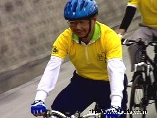 杜正勝到花蓮進行單車自由行。(東森新聞圖)