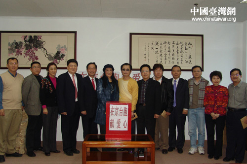 北京臺協(xié)發(fā)起的“在京臺胞為災(zāi)區(qū)獻(xiàn)愛心募捐活動”3日下午在北京臺資企業(yè)協(xié)會舉行。圖為捐款的在京臺胞在募捐箱后合影。(攝影:田云鵬)