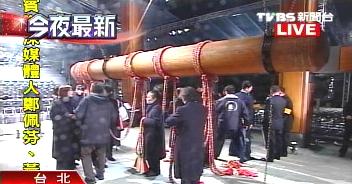 除夕夜零點一到,馬英九和謝長廷等各界賢達,和圣嚴法師共同撞響法華鐘第六響,祈福許下好愿,也迎接新年到來。(周先)