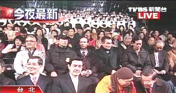 馬英九(前排右三)、謝長廷(前排右一)同臺。(臺灣TVBS圖)