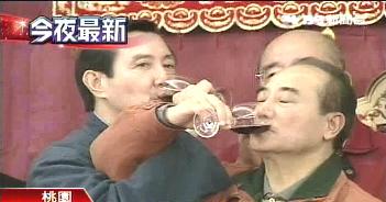 報道指,馬英九、王金平昨晚在媒體提議,并且在吳伯雄的撮合下,再度喝起交杯酒,象征國民黨的團結。(周先)