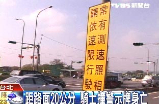 中國臺灣網(wǎng)2月21日消息 據(jù)臺灣TVBS電視臺報道,4年前就讀淡江大學(xué)的梁姓男學(xué)生,騎車經(jīng)過臺北市大度路時,一輛轎車誤闖摩托車專用道,梁同學(xué)煞車不及,撞上路邊測速警告標(biāo)牌后死亡;梁同學(xué)的父母認(rèn)為標(biāo)牌太靠近馬路,才會讓兒子枉送性命,訴請賠償,臺灣“高院”審理認(rèn)為臺北市交工處在標(biāo)牌設(shè)置上有疏失,判賠償136.6萬余元新臺幣。