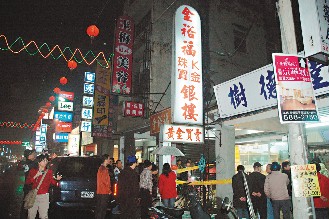 不少民眾在遭搶劫銀樓外圍觀 (臺灣《聯合報》圖片)