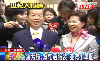 謝長(zhǎng)廷與夫人游芳枝 (臺(tái)灣TVBS電視臺(tái)圖片)