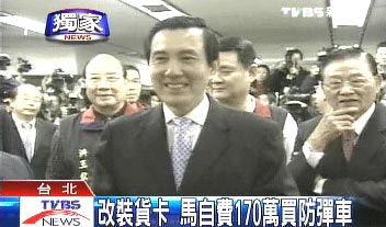 根據TVBS了解,馬英九以私人名義購買,從買到改裝不假安全單位之手,除了擔心搭乘安全單位的防彈車,在車上可能被監聽,另一方面也是因應馬英九常常一天之內南北奔波,需要多一臺防彈車待命。目前這臺防彈車已經改裝完成,3月份將正式肩負起馬英九的維安和保密工作。(高大林)