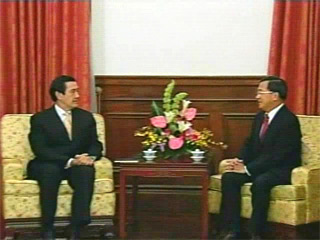 馬英九與陳水扁今天上午在臺北賓館會面。(東森新聞)