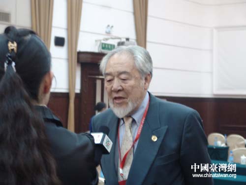 中國(guó)臺(tái)灣網(wǎng)4月8日鄭州消息 在第七屆中國(guó)和平統(tǒng)一促進(jìn)會(huì)海外會(huì)長(zhǎng)會(huì)的會(huì)場(chǎng)上,有一位白須冉冉,仙風(fēng)道骨的老人,他就是中國(guó)和平統(tǒng)一促進(jìn)會(huì)理事,全英華人中國(guó)統(tǒng)一促進(jìn)會(huì)會(huì)長(zhǎng),南京大學(xué)名譽(yù)校董、客座教授,全國(guó)政協(xié)海外委員單聲先生。當(dāng)年,他曾因當(dāng)面向溫家寶總理提出以法律的手段促進(jìn)祖國(guó)統(tǒng)一的建議(他當(dāng)時(shí)提出的名稱是“統(tǒng)一法”)而聞名一時(shí)。記者在與他的交談中,也切實(shí)感受到了單聲先生以法理反“臺(tái)獨(dú)”、促統(tǒng)一的堅(jiān)定與熱切。