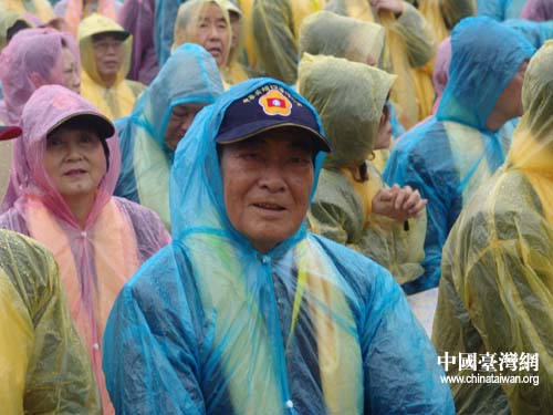 臺灣中華黃埔四海同心會的退役老將軍冒雨參加拜祖大典(賀晨曦 攝)