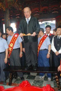吳伯雄今天上午到桃園縣蘆竹鄉五福宮參加一場廟會,并為活動揭幕。(臺灣“中廣新聞”圖片)