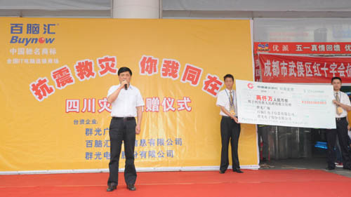 在5月13日下午收到臺灣鴻海集團總裁郭臺銘先生捐贈6000萬元后,5月13日晚,四川省抗震救災指揮部通報災區交通阻斷,食品和飲用水匱乏。四川省臺辦立即向在川發展的臺資企業發出倡議,并與旺旺集團成都公司取得聯系,當即表示將現存的200噸、價值300萬元的生活物資和200萬元現金捐獻給災區。