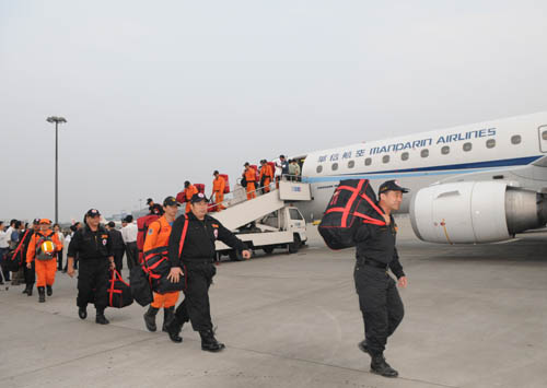 國臺辦和四川省臺辦領導到機場迎接臺灣救援隊。