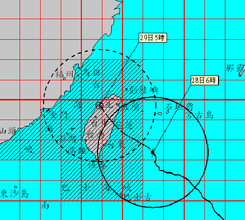 臺灣氣象部門發(fā)布的臺風(fēng)走向圖