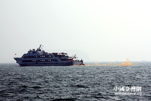 中國臺灣網(wǎng)10月24日廈門消息 汽笛長鳴,濃煙彌漫。23日下午,兩岸首次聯(lián)合大規(guī)模海上搜救演習在廈金航線海域進行。這是廈金航線上首次進行兩岸共同參與的海陸空聯(lián)合搜救演習,標志著兩岸海上搜救合作在互通信息的基礎(chǔ)上更進一步。