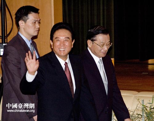 兩岸互贈珍稀動植物記者會今天在臺北舉行。這是陳云林江丙坤入場。中國臺灣網 田云鵬攝