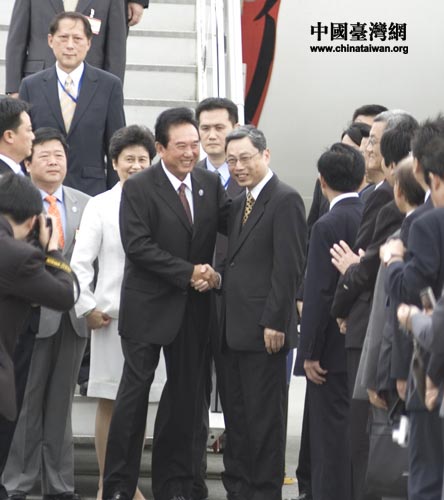以海協會會長陳云林為團長的海協會協商代表團3日中午乘坐包機抵達臺灣桃園機場。海基會秘書長高孔廉以及海基會相關負責人前往機場迎接。中國臺灣網 田云鵬攝