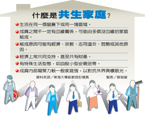 中國臺灣網11月20日消息 綜合臺媒報道,越來越多的“共生家庭”正在臺灣社會出現,他們可能是一群志同道合的好友同住,也可能因理念、宗教關系共食共耕,彼此沒有血緣關系,但他們說“我們都是一家人”。曾研究這類家庭的臺灣東海大學社工系副教授彭懷真表示,隨著社會形態改變,另類共生家庭增多是可預期的,“血緣可能不再是唯一的緣。”