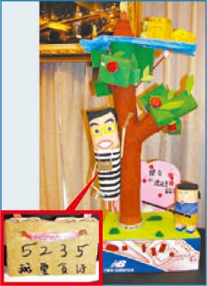 中國臺灣網1月6日消息 據臺灣《蘋果日報》報道,高雄應用科技大學一場創意環保童話公仔競賽,原訴求童話可愛風格,但一組嘲諷陳水扁的《杰克與櫻桃豆》創作,讓陳水扁穿上編號“5235 (諧音‘我愛貪污’)”囚衣,意外拿下銅牌。