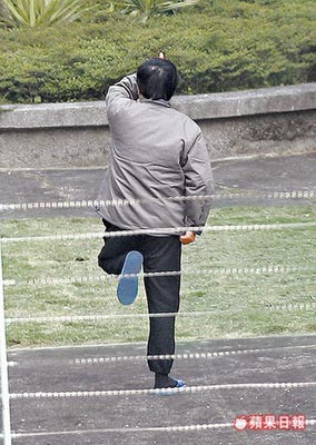 陳水扁放風(fēng)時做金雞獨立狀。來源:臺灣《蘋果日報》