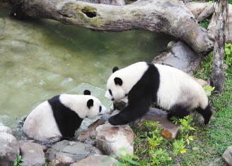 團團、圓圓昨天上午首次在戶外展示區亮相,興奮地在水池邊玩水,它們活潑好動的模樣,讓游客直呼“好可愛”。來源:臺灣《聯合報》
