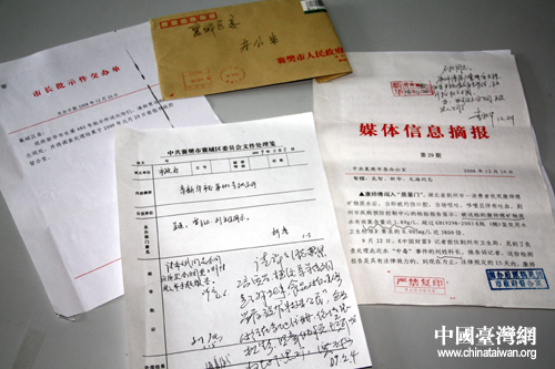 襄樊市襄城區政府辦公室副主任胡章斌,向記者出示針對此事件的媒體信息摘報、市長批示件交辦單等資料。