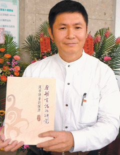 他將研究成果匯整成《唐朝官話的研究》出版,昨天發表。作家鐘肇政說,透過邱的研究,讓大家了解閩南語與和客家語的來龍去脈,“深有茅塞頓開的快意”。