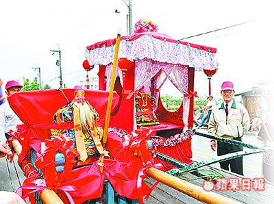 中國臺灣網(wǎng)3月24日消息 據(jù)臺灣《蘋果日報》報道,臺灣花蓮縣鳳林鎮(zhèn)大榮一村的金田福德祠供奉土地公,信徒們昨天循古禮為土地公娶妻,準(zhǔn)備喜餅、紅包、金牌等物品下聘,還扛著迎親花轎游街,敲鑼打鼓,喜氣洋洋。
