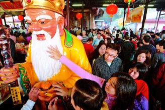 臺北縣中和市烘爐地土地公廟是求財神的熱門地點,臺彩董事長尚瑞強去年請求保佑臺彩業績好,結果最近頭獎開到要“倒貼”,他今天要趕著去還愿。圖:臺灣《聯合報》