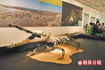 臺(tái)灣自然科學(xué)博物館昨?qū)⒐坯{化石復(fù)原復(fù)制標(biāo)本捐贈(zèng)澎湖科教館展出。來源:臺(tái)灣《蘋果日?qǐng)?bào)》