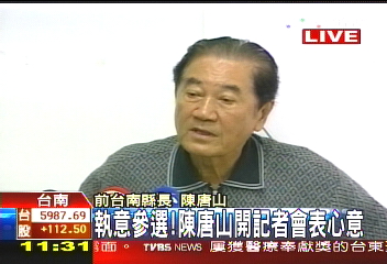 中國臺灣網4月16日消息 據臺灣TVBS電視臺報道,民進黨敲定由李俊毅出線參選臺南縣長后,民調最高的前“總統府秘書長”、前臺南縣長陳唐山仍執意參選。今天上午,陳唐山召開記者會,希望民進黨中央要考慮民調,如果最后因為分裂而敗選,責任也不是民調高的他來扛。