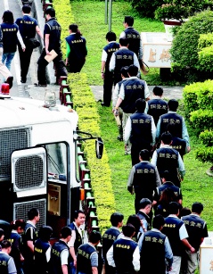 臺檢調(diào)部門昨天大動作搜索臺北看守所,并且?guī)Щ?名管理員,以及離職管理員、收容人、收容人家屬等人,并連夜調(diào)查,今天移送8人到板橋地檢署復(fù)訊后,檢方向法院聲請羈押。