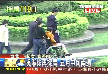 中國臺灣網4月27日消息 據臺灣TVBS報道,吳淑珍預計在5月20日以前,就要南遷到高雄新家。今天陳致中也特別北上臺北,和吳淑珍一起探望陳水扁。
