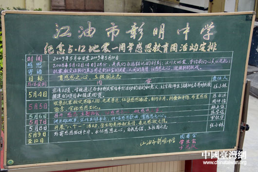5.12地震一周年之際,彰明中學有計劃的開展感恩教育活動。(中國臺灣網 鐘寶華 攝)