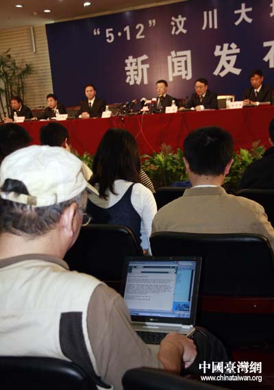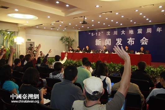 四川省委、省政府在成都舉行“5·12汶川大地震周年” 新聞發(fā)布會,向社會各界通報災后重建的情況。(中國臺灣網(wǎng) 鐘寶華 攝)