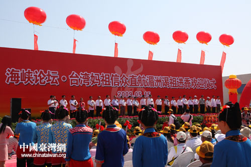 臺灣媽祖信眾直航湄洲進香團抵達湄洲,圖為歡迎儀式現場。(中國臺灣網記者 張弛 攝)