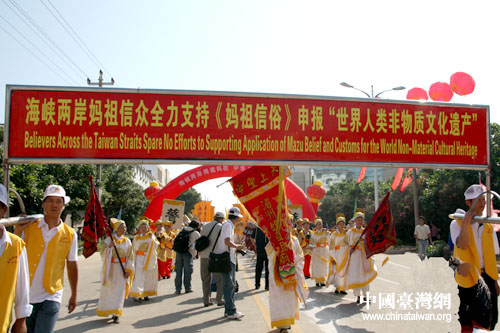 圖為今天抵達(dá)湄洲的臺(tái)灣媽祖信眾。(中國(guó)臺(tái)灣網(wǎng)記者 張弛 攝)