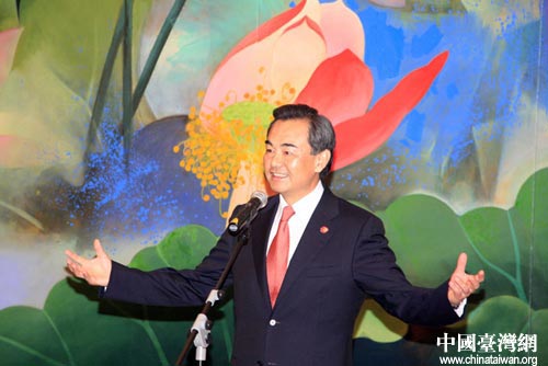 17日中午,中共中央臺(tái)辦、國務(wù)院臺(tái)辦在廈門舉辦酒會(huì),招待出席海峽論壇大會(huì)的中國國民黨副主席朱立倫等臺(tái)灣嘉賓。圖為王毅主任在招待酒會(huì)上致辭。中國臺(tái)灣網(wǎng) 鐘寶華 攝